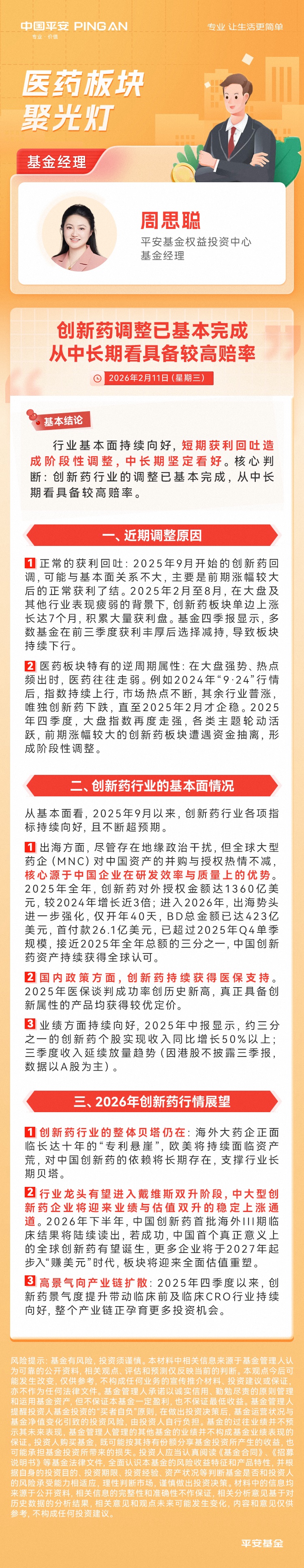 平安基金周思聪:创新药调整已基本完成,从中长期看具备较高赔率